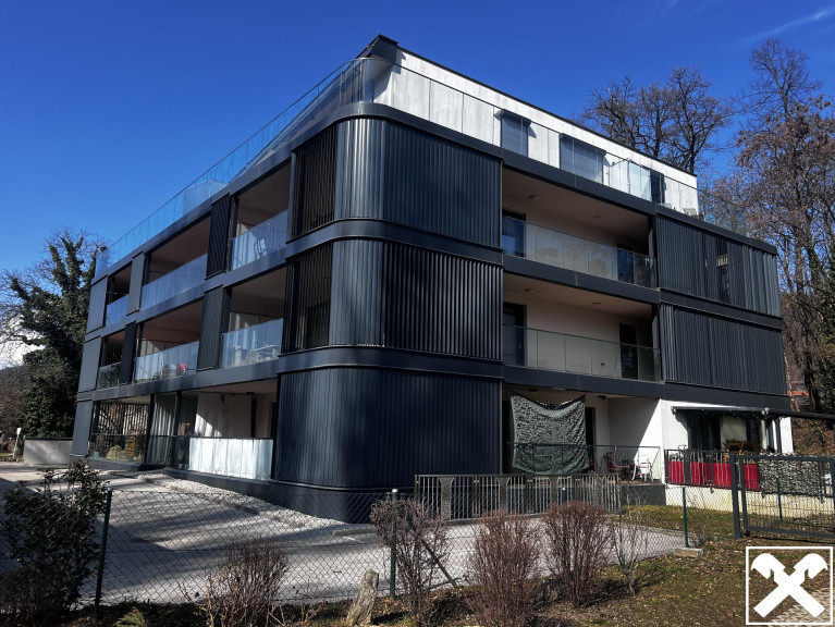 Ein überdachter Balkon erweitert den Wohnraum nach außen und lädt zum Entspannen ein – ob mit Blick ins Grüne, über Pörtschach oder Richtung See.