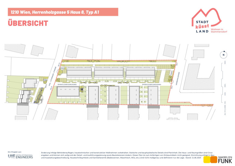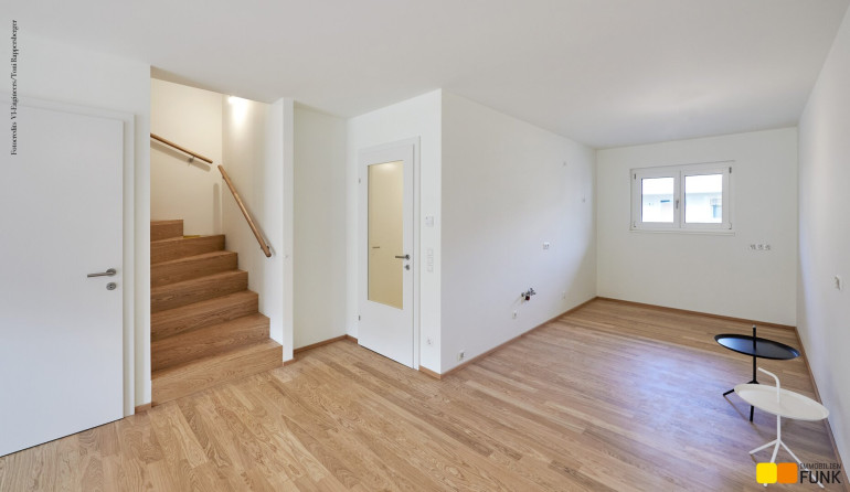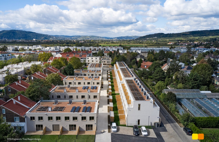 Das soeben fertiggestellte Neubauprojekt „STADT küsst LAND“ ist ein Bauvorhabenvon VI-Engineers Bauträger GmbH & Co KG und entsteht zentrumsnah in Stammersdorf auf einem ca. 10.000 m² großen Areal, eingebettet zwischen Brünner Straße und Jedlersdorfer Straße in 1210 Wien. Es umfasst insgesamt 46 freifinanzierte Reihenhäuser mit Eigengärten und Terrassen sowie 53 zugewiesene PKW-Stellplätze mit nachrüstbarer E-Lademöglichkeit. Ansprechende Grundrisse, eine werthaltige Qualität dank Ziegelmassivbauweise, ein nachhaltiges Energiekonzept mit hauseigener Luftwärmepumpe und Photovoltaik-Anlage am Dach, eine hochwertige Ausstattung wie Fußbodenheizung, außenliegender Sonnenschutz mit Elektroantrieb, Eichenparkettböden und Feinsteinzeug zeichnen zudem das moderne Projekt aus. Alle Bilder: © VI-Engineers/ Toni Rappersberger. Fotos Innenräume: Musterhaus. Machen Sie sich selbst ein Bild- wir führen Sie gerne durch die Häuser.