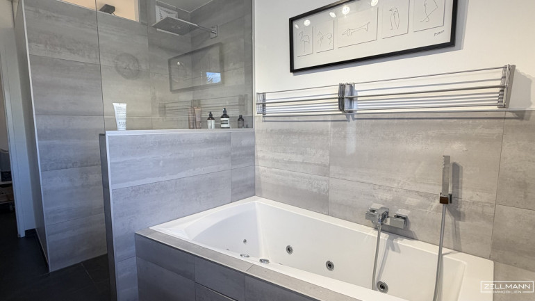 Das Wohn- und Esszimmer ist lichtdurchflutet und öffnet sich direkt zur großen Südterrasse, wodurch ein fließender Übergang zwischen Innen- und Außenbereich entsteht. Die modernisierten Nassräume präsentieren sich zeitlos, pflegeleicht und hochwertig. Insgesamt ergibt sich ein Wohngefühl, das sofort bezugsfertig ist und langfristig Wertstabilität verspricht.