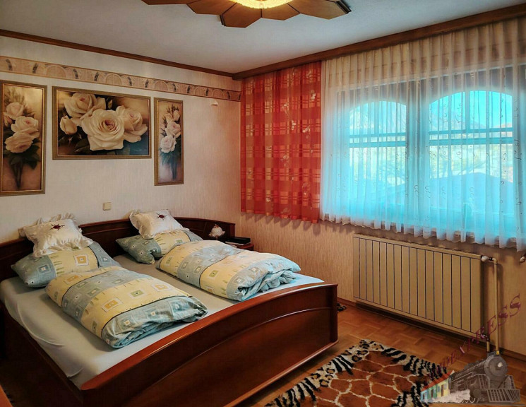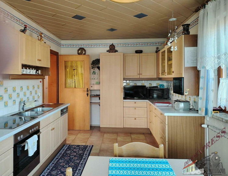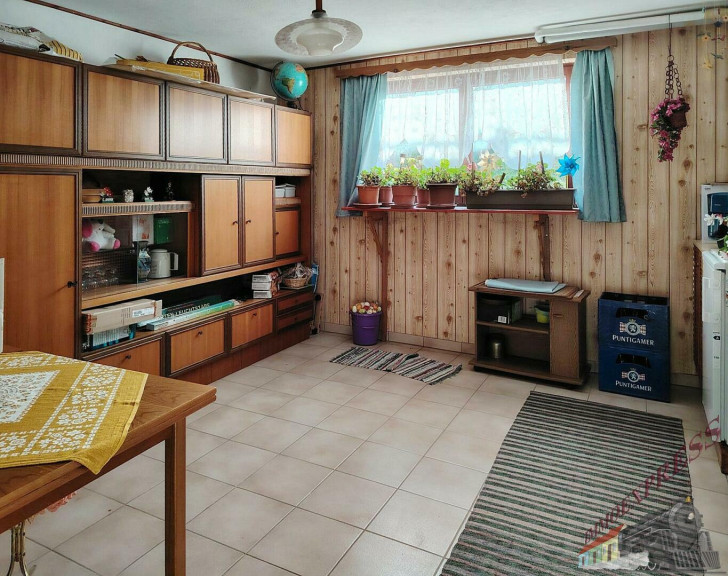 Die vorhandenen Kunststofffenster sind 2-Scheiben isolierverglast und besitzen elektrisch gesteuerte Außenjalousien. Vom Wohnzimmer und einem weiteren Zimmer erreicht man die südseitige Terrasse. Die Küche ist mit allen Geräten ausgestattet und bietet viel Platz in Kombination mit der Essecke. Beheizt wird das Haus mit einer Gasheizung und Radiatoren. Alternativ kann auch mit einem Holzkessel geheizt werden.