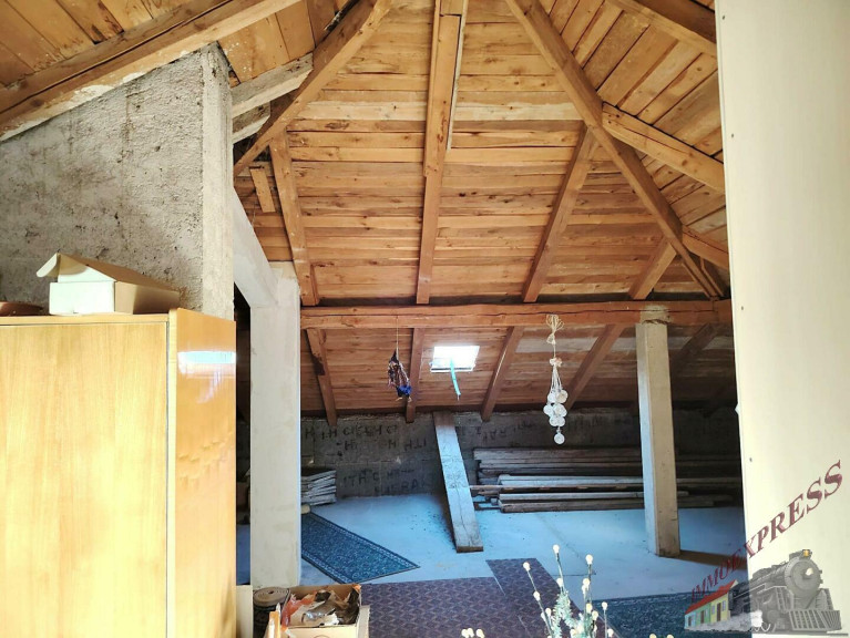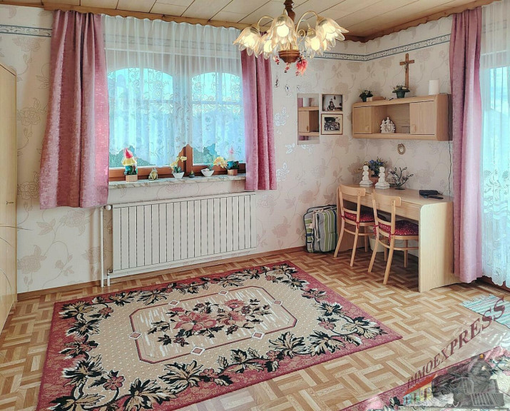 Das Haus BJ ca. 1980 ist ein Massivhaus und ist voll unterkellert. Es besitzt ein optisch schönes Walmdach. Aufgeteilt auf ca. 97m² Wohnfläche befinden sich im EG vier Zimmer sowie Küche mit Essbereich. Im Dachgeschoß gibt es die Möglichkeit auf ca. 60m² weitere 1-2 Zimmer nach den eigenen Vorstellungen zu errichten.