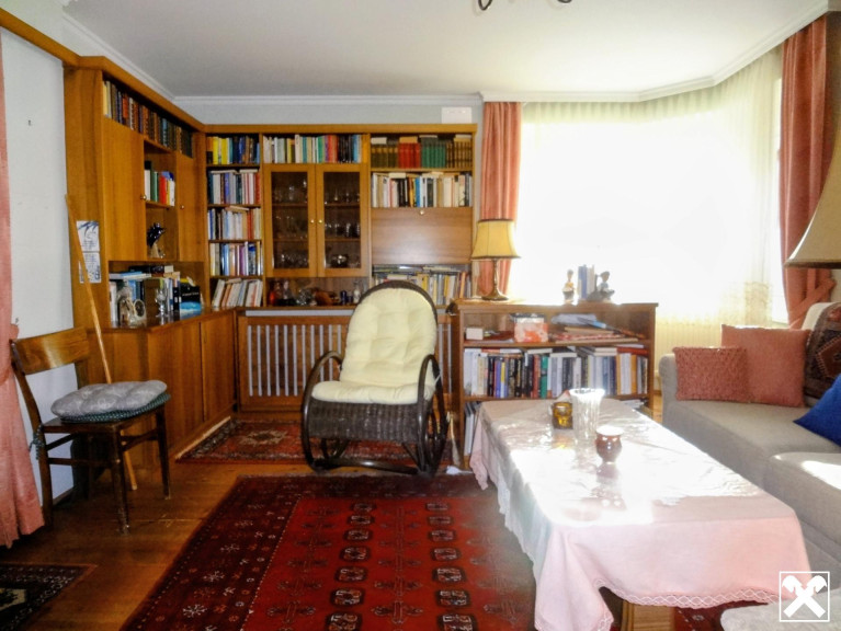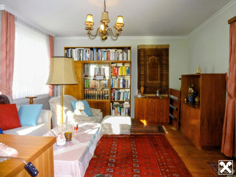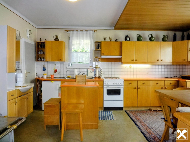 Nettes, älteres Einfamilienhaus mit Wohn-und Schlafräumen im Erdgeschoss und teilausgebauter Mansarde. Wohnküche mit zusätzlich schönem Holzherd nach altem Stil, Pelletszentralheizung, Kaltdach mit Bramacziegel, Glasfaser an der Grundstücksgrenze.