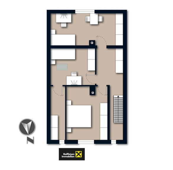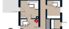 Obergeschoss (ca. 57 m²): Drei Schlafzimmer, von denen aktuell zwei als Abstellräume genutzt werden.