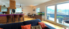 Der offene Wohn- und Essbereich mit hoher Raumdecke und direktem Terrassenzugang bildet das Herzstück der Wohnung.