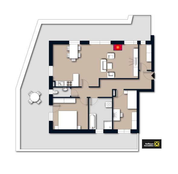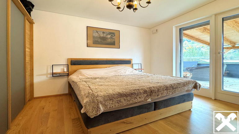 Zwei Schlafzimmer (eines ebenfalls mit Terrassenzugang), ein modernes Bad, Vorraum und Abstellraum runden das Raumkonzept ab.