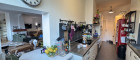 Die hochwertige Einbauküche mit praktischer Durchreiche fügt sich harmonisch in das offene Raumkonzept ein und macht Kochen zum Vergnügen.