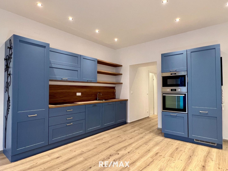 Großzügiges Wohn-Esszimmer mit direktem Ausgang zum Balkon – ideal für gemütliche Abende oder geselliges Beisammensein. Ein Schlafzimmer in italienischem Stil gestaltet sowie ein Arbeitszimmer mit Fenster zur ruhigen Koflergasse. WC und Badezimmer sind getrennt. Die kobaltblaue Küche wurde extra aus Italien angeliefert und ist perfekt ausgestattet. Alle Zimmer sind zentral begehbar und mit Parkett ausgestattet. Die Wohnung ist barrierefrei mit Lift erreichbar.