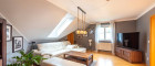 Der im Jahr 2012 ausgebaute Dachbereich bietet ein stilvolles, privates Wohnzimmer – perfekt als Rückzugsort oder Atelier. Ergänzt wird dieser Bereich durch ein elegantes Badezimmer mit Badewanne und Seeblick sowie ein geräumiges Schlafzimmer mit Balkon. Auch ein Dachboden steht zusätzlich zur Verfügung.