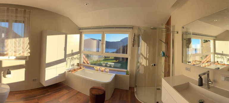 Ein separater, privater Bereich (Gästebereich) beherbergt ein Schlafzimmer mit Seeblick, ein Badezimmer sowie ein separates WC.