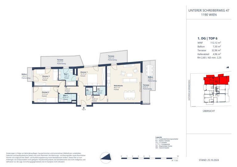 Parkett, Fußbodenheizung, Personenaufzug, Dusche, Badewanne