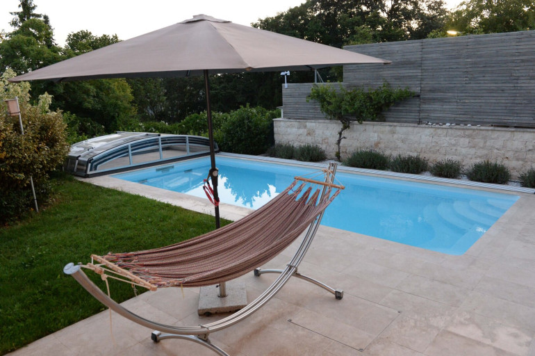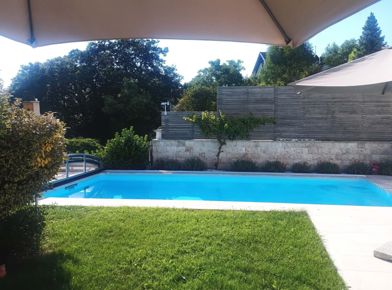 Pool mit Fluvo X-Jet Gegenstromanlage – Für sportliche Bahnen oder entspannte Erfrischung im eigenen Gartenparadies.