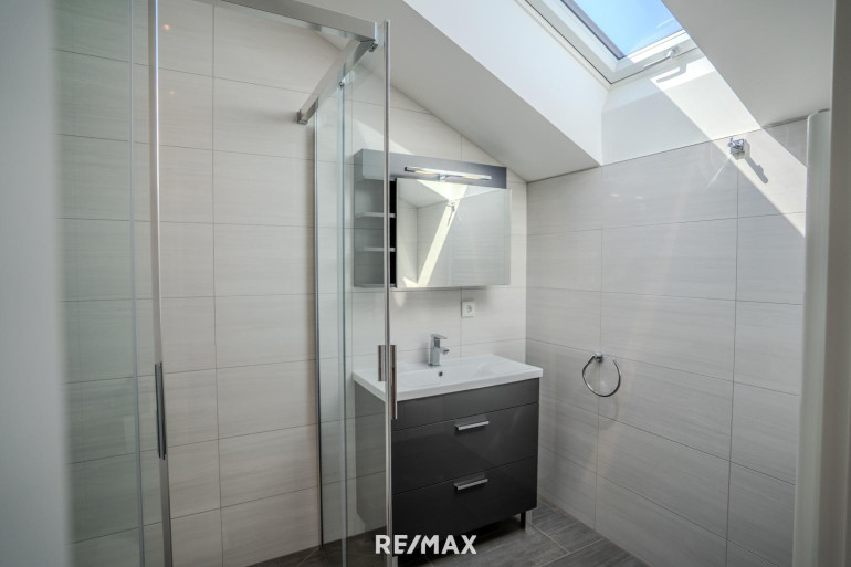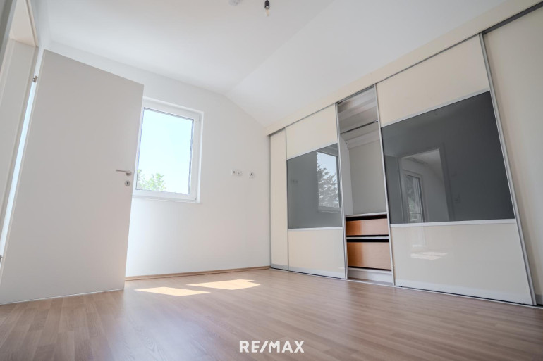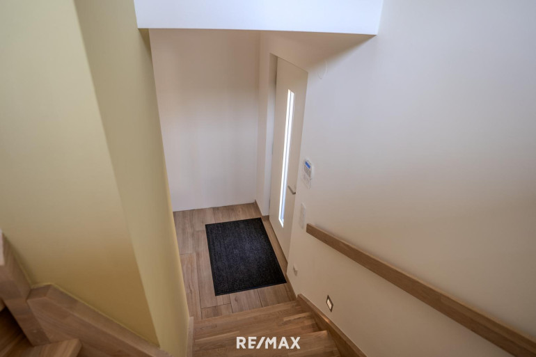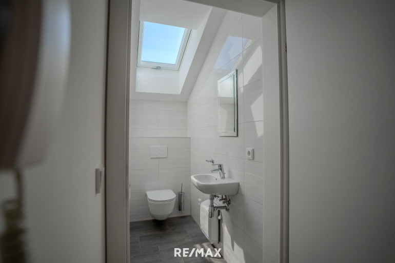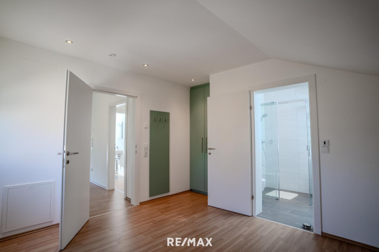 Im Obergeschoss erwartet Sie eine Galerie, die zu einem weiteren Schlafzimmer mit Bad und WC führt. Im Gang zur zweiten Wohnküche befinden sich ein WC mit Handwaschbecken, sowie ein Schlafzimmer. Das Bad in dieser Etage ist großzügig gestaltet, mit einem großen Waschtisch, einer Badewanne sowie einer Dusche und einem WC. Von der großen Wohnküche gelangen sie auf den Balkon sowie zu einem weiteren Schlafzimmer. Alle Räume sind durch den Vorraum zugänglich, was eine optimale Privatsphäre gewährleistet.