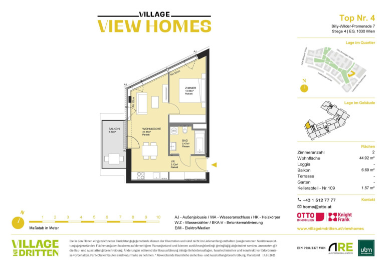 Dank der Nähe zur S-Bahn-Haltestelle St. Marx, der Straßenbahnlinie 18 und weiteren öffentlichen Verkehrsmitteln sowie dem Autobahnanschluss an die A23 ist VIEW HOMES sehr gut an das öffentliche Verkehrsnetz angebunden: So ist etwa der Hauptbahnhof nur sieben Minuten mit der Straßenbahn entfernt. Ebenso wird mit der Verlängerung der Straßenbahnlinie 18 von der U3-Station Schlachthausgasse zur U2-Station Stadion bis Herbst 2026 eine neue Direktverbindung in den grünen Prater geschaffen. Ein optimaler Standort zum Leben. Die Billy-Wilder-Promenade befindet sich am südöstlichen Kopfende des neu errichteten zentralen Bert-Brecht-Parks. Moderne Einkaufs-, Freizeit- und Gastronomieflächen erwarten Sie in fußläufiger Entfernung in den Erdgeschoßzonen des gesamten Quartiers und in den DOCKS am Landstraßer Gürtel.Beschreibung der Immobilie
