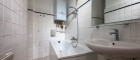 - ein Badezimmer mit Badewanne und Gastherme,