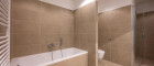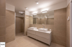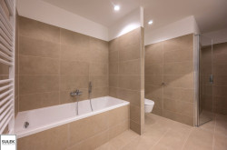 - das rd. 20m² große Schlafzimmer mit abgetrenntem Schrankbereich und en suite-Badezimmer (rd. 10m²) mit Badewanne, Dusche, Doppelwaschbecken und WC.
