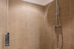- das Gästebad mit WC, Handwaschbecken, Dusche und Waschmaschinen-Anschluss, sowie die