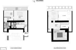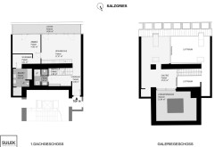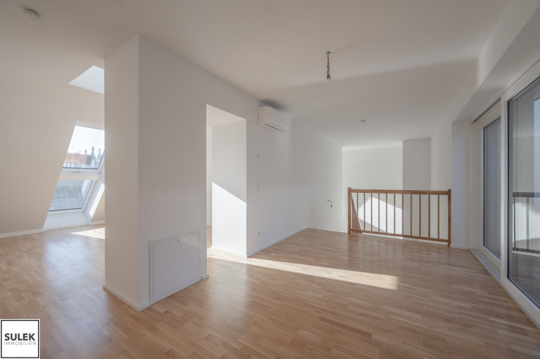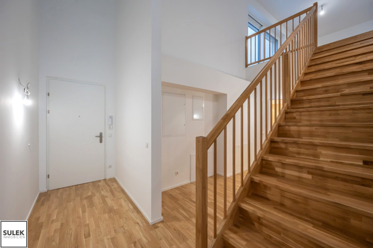 In den oberen Etage, welche über den Vorraum zu erreichen ist, stehen Ihnen rd. 37m² zur Verfügung. Die offene Gestaltung der Galerie lässt viele verschiedene Möglichkeiten der Nutzung zu. Hier befindet sich auch der Ausgang zur rd. 22m² großen Atriumterrasse.