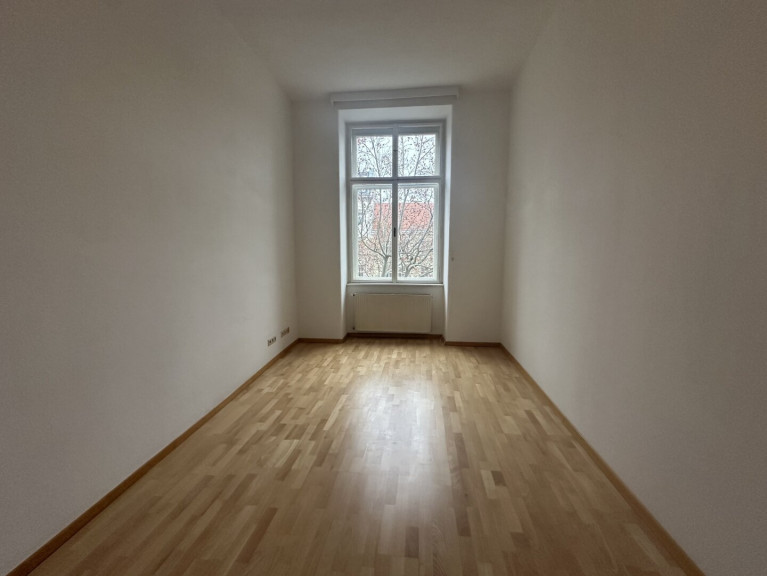 Die Räumlichkeiten sind aufgeteilt in zwei helle und freundliche Zimmer, die dank der großen Fenster viel Tageslicht hereinlassen. Der hochwertige Parkettboden verleiht den Räumen eine angenehme Atmosphäre, während die Fliesen in den Nebenräumen für eine pflegeleichte Nutzung sorgen. Eine moderne Einbauküche ist ebenfalls vorhanden.