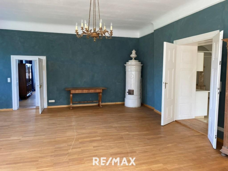 In einer eindrucksvollen Villa aus dem Jahr 1627 wartet diese außergewöhnliche 250 m² große Mietwohnung auf neue Bewohner. Das Gebäude zählt zu den ältesten historischen Objekten in der Region und wurde über die Jahrhunderte hinweg sorgsam erhalten. Bereits beim Betreten spürt man den unverwechselbaren Charme: hohe Räume, großzügige Grundflächen und ein authentisches historisches Flair, das modernen Häusern selten gelingt.