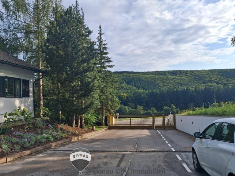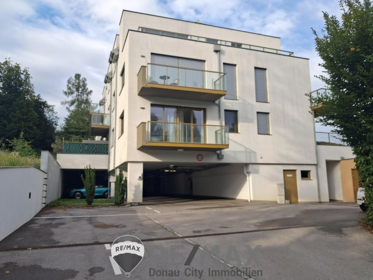 Man kommt die Einfahrt bequem mit dem Auto beim vollautomatischen Einfahrtstor hinauf und parkt in der Tiefgarage auf einem eigenem Parkplatz, der 98,- € mon. kostet.