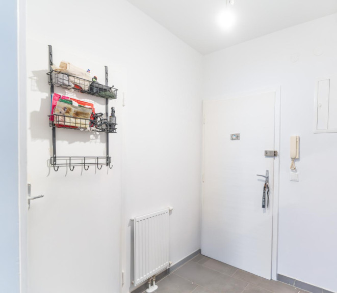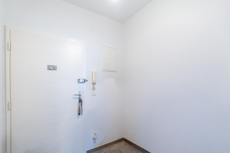 Zunächst gleich der zentrale Vorraum mit Zugang zum Wohnraum, Duschbad und Abstellraum - inklusive Platz für Ihre Garderobe.
