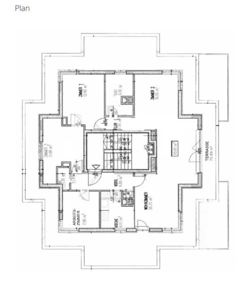 Penthouse-Wohnung im gesamten obersten Stockwerk mit einer rundumlaufenden Dachterrasse in Baden
