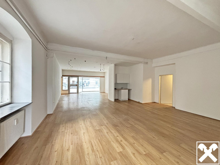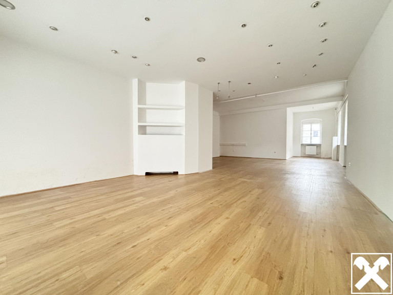 Diese repräsentative Geschäftsfläche bietet einen einladenden Verkaufsraum, einen praktischen Lagerraum sowie ein WC. Besonders hervorzuheben ist die großzügige Schaufensterfront, die ideale Möglichkeiten für eine aufmerksamkeitsstarke Warenpräsentation schafft.