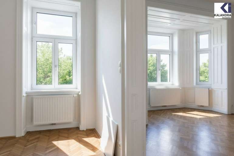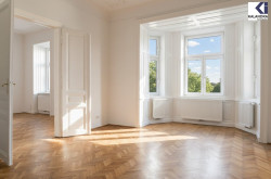 Die aufwendig sanierte Einheit besticht durch ihren klassischen Altwiener Stil: