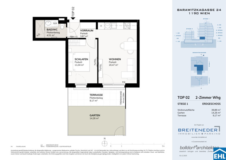 In zwei modernen Wohnhäusern entstehen insgesamt 26 hochwertig ausgestattete Wohnungen – jede mit privater Freifläche – sowie 13 PKW-Stellplätze. Die durchdachten Grundrisse und Größen sind genau auf die Bedürfnisse des Wiener Markt abgestimmt: von kompakten Einheiten für Singles und Paare bis zu großzügigen Wohnungen für Familien oder anspruchsvolle Mieter.