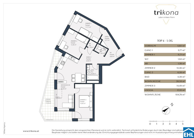 Die hochwertige Ausstattung des Projekts „Trikona“ und die energieeffiziente, innovative Holz-Hybrid-Bauweise spiegeln exzellentes Design und Qualität wider. Zeitlose Unterputzarmaturen der Firma Grohe sorgen für eine elegante Optik und praktische Nutzung. Das Weitzer Echtholzparkett schafft eine warme, natürliche Atmosphäre in den Räumen, während die moderne Smart Home Anlage das Wohnen komfortabel und intelligent macht – von der Steuerung der Beleuchtung bis hin zu Heizung und Sicherheitssystemen. Für Energieeffizienz sorgen eine Wärmepumpe mit Fußbodenheizung sowie eine innovative Kühlung via Roll Over System, die das ganze Jahr über für angenehme Temperaturen sorgt. Hochwertige Feinsteinfliesen im Badezimmer und in der Küche verleihen den Räumen einen eleganten, pflegeleichten Look. Echtholzböden ergänzen das harmonische Gesamtbild und unterstreichen die Qualität der Ausstattung. Besonders hervorzuheben ist, dass alle verwendeten Materialien, Marken und Subunternehmen aus Österreich stammen. Damit wird nicht nur höchste Qualität garantiert, sondern auch die lokale Wirtschaft nachhaltig unterstützt. Diese Kombination aus österreichischer Handwerkskunst, Ästhetik und Funktionalität macht das Wohnerlebnis in „Trikona“ einzigartig.
