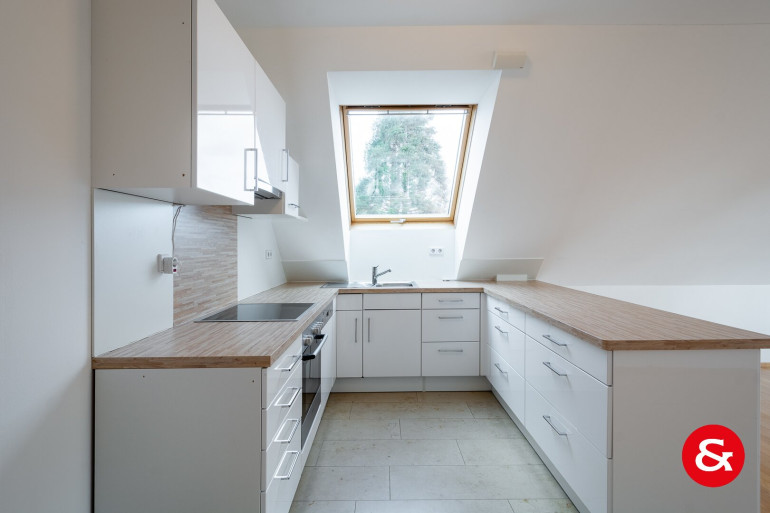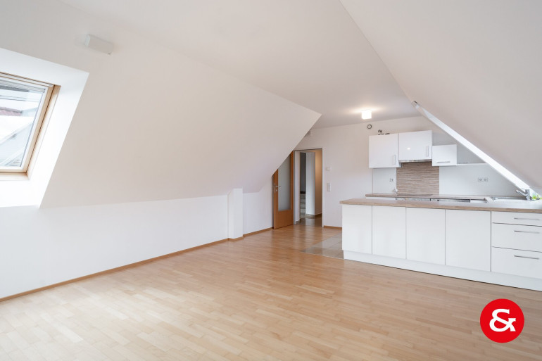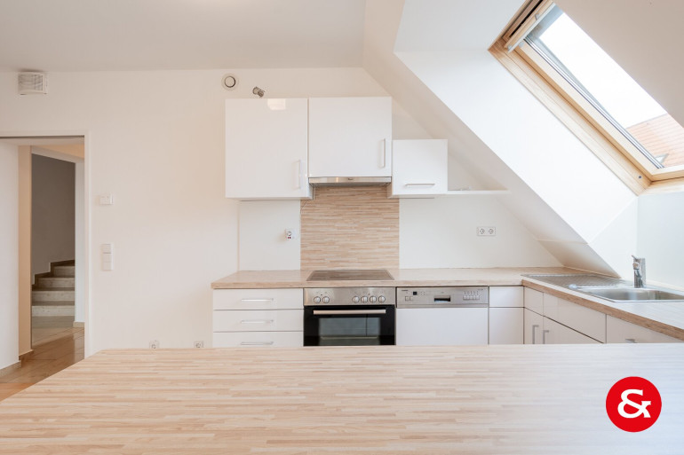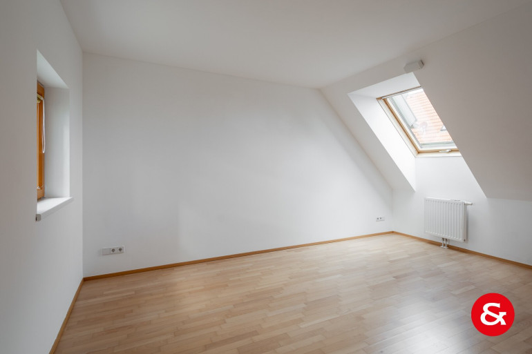 Eine beinahe 40 m² große Wohn-Essküche bildet das Zentrum der Dachwohnung - über einen zentralen Vorraum können Sie alle anderen Räume erreichen. Badezimmer und WC befinden sich in getrennten Räumen.