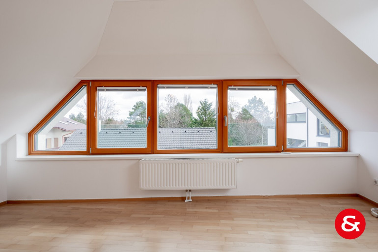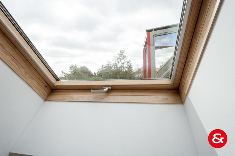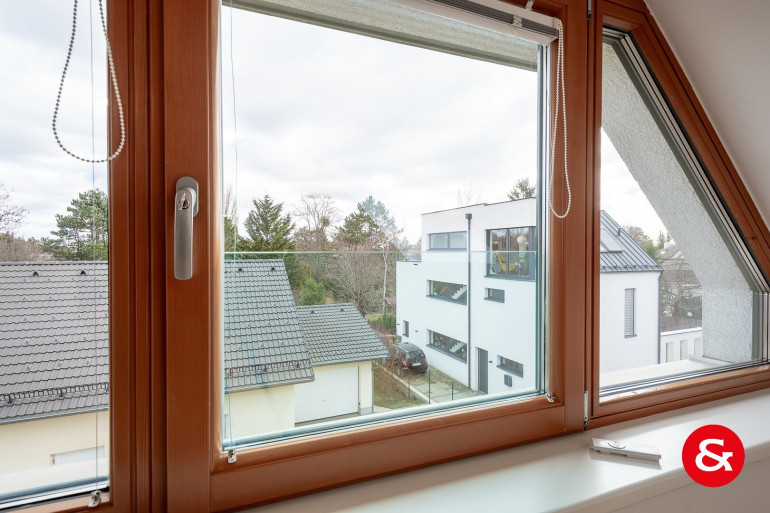Sämtliche Räume sind mit Parkettböden versehen - Marmorfliesen im Eingangsbereich, elektrische Außen-Jalousien bei allen Dachflächenfenstern (mit Fernbedienung) und eine kontrollierte Wohnraumlüftung runden den modernen Stil ab.