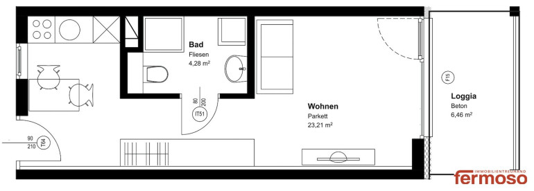 Der helle Wohn-/Schlafbereich ist offen gestaltet und bietet direkten Zugang zur Loggia, die zum Entspannen im Freien einlädt. Die hochwertige Ausstattung sowie der moderne Neubau-Standard machen diese Wohnung zu einem idealen Rückzugsort.