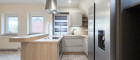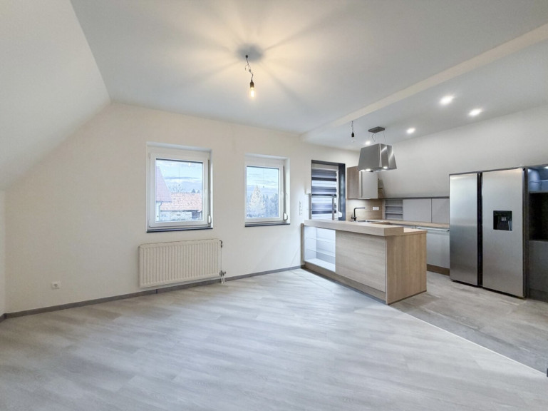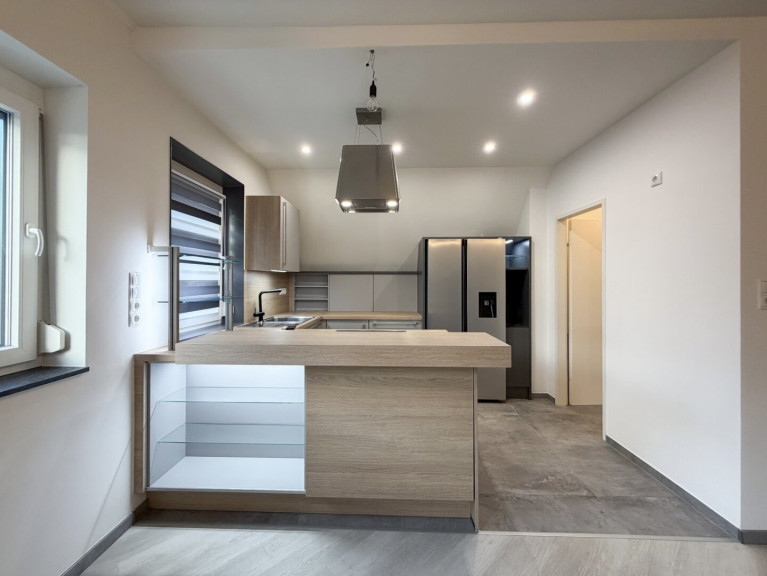 Fliesen, Kunststoffboden, Fußbodenheizung, Zentralheizung, Einbauküche, Wohnküche / offene Küche, Bad mit Fenster, Dusche, Garage, Parkplatz