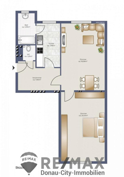 - Geräumiges Vorzimmer mit ausreichend Platz für Stauraum