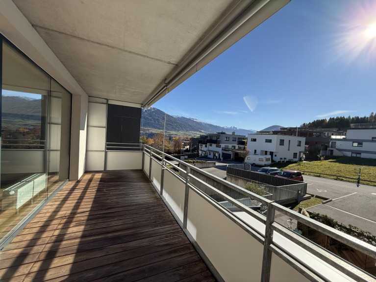 Die lichtdurchfluteten Räume sorgen durch ihre großen Fensterflächen für ein angenehmes Wohngefühl zu jeder Tageszeit. Highlight der Wohnung ist der rund 11,55 m² große Balkon, der zum Entspannen und Genießen einlädt – mit Blick auf die umliegende Bergwelt ein echter Mehrwert.