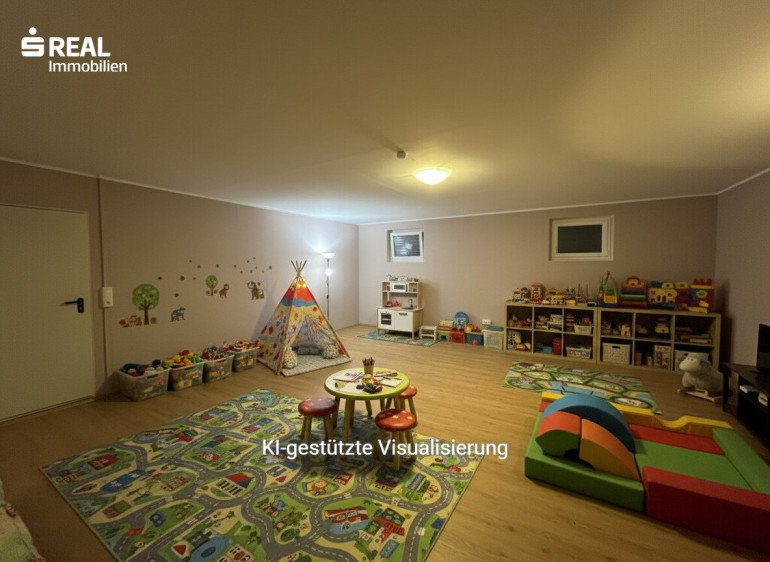 „Die s REAL weist darauf hin, dass in einzelnen Objektbildern KI-gestützte Anpassungen vorgenommen wurden, um z. B. Einrichtungsvorschläge oder Gestaltungsbeispiele zu zeigen. Diese Bilder sind als ‚KI-gestützte Visualisierung‘ gekennzeichnet. Sie dienen ausschließlich der Veranschaulichung und stellen nicht den tatsächlichen Ist-Zustand der Immobilie dar."