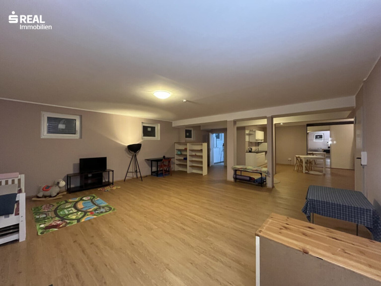 Zum Verkauf steht ein ca. 91 m² großer, vielseitig nutzbarer Kellerraum mit Fenstern, Bad, Küchenzeile (ohne E-Geräte) und viel Freiraum für Hobbys, Fitness oder Spiel und Spaß.