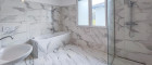 + Badezimmer mit Badewanne und begehbarer Duschkabine, Doppelhandwaschbecken und beheiztem Handtuchhalter