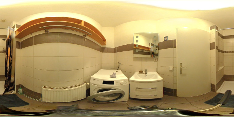 Badezimmer mit ebenerdiger Dusche Modern, klar und einladend – mit ebenerdiger Dusche und Waschmaschinenanschluss. Ideal, um entspannt in den Tag zu starten.
