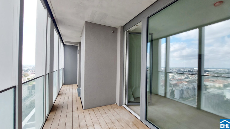 In einzigartiger Lage, direkt bei der U1-Station Kagran und vis-à-vis vom Donau Zentrum, entsteht ein exklusiver, ca. 155m hoher Wohnturm mit 45 Etagen. Die insgesamt 347 Mietwohnungen bieten einen vielfältigen Wohnungsmix: von smart geschnittenen 1,5-Zimmer-Apartments ab ca. 38 m² über komfortable 2-Zimmer-Wohnungen bis hin zu großzügigen 3- und 4-Zimmerwohnungen mit bis zu ca. 80 m².