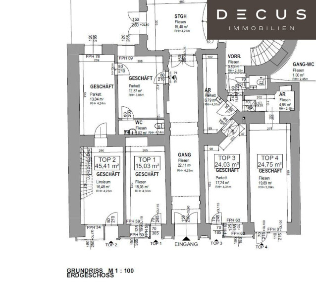 Zum Verkauf stehen mehrere vermietete Geschäftslokale, alle an der Straßenfront, mit folgenden Fakten: