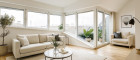 geräumiges Wohnzimmer mit Küche und direktem Zugang zu den zwei Terrassen