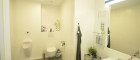 ein neuwertiger Sanitärraum mit WC, Pissoir und Wachbecken,