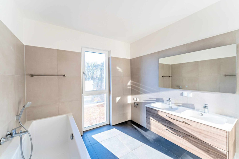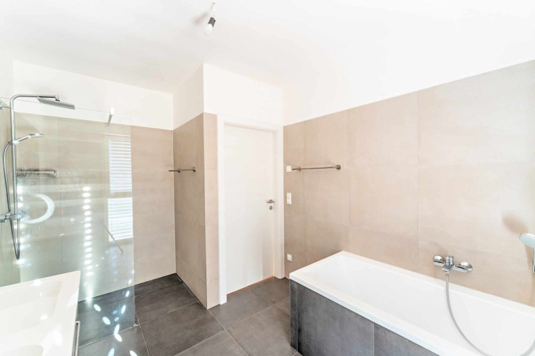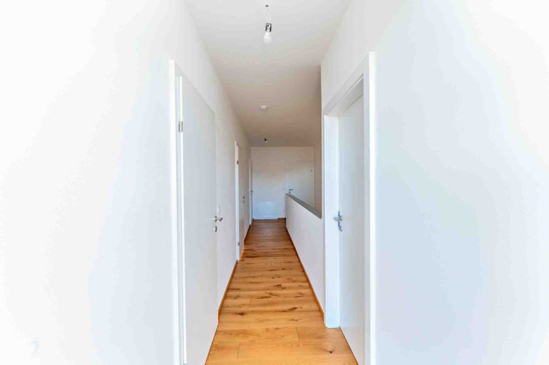 Im Obergeschoss befinden sich eine separate Toilette, das großzügige Badezimmer mit Fenster, Badewanne, Doppelwaschbecken, großer Dusche und noch einem Waschmaschinenanschloss, sowie zwei helle Schlafzimmer mit Südwest-Ausrichtung und schönem Ausblick. Abgerundet wird das Raumangebot durch den Masterbedroom nach Nordosten samt sehr großem angeschlossenen Schrankraum – ein besonderer Komfortgewinn im Alltag.