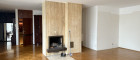 Offener Kamin und großzügiges Wohnzimmer mit direktem Terrassenzugang