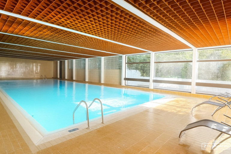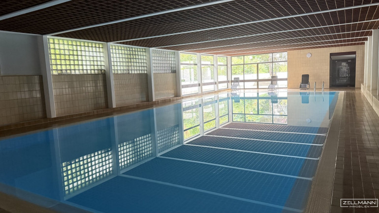 Sehr großes Indoor-Pool für ganzjährigen Badespaß (ca. 20 x 7 Meter)