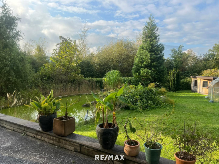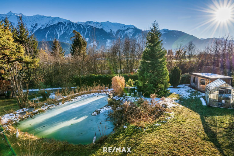 • Attraktiver Garten mit Schwimmteich, Gartenhaus und Glas-Gewächshaus