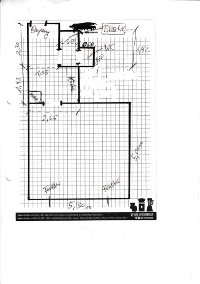 Auf einer Nutzfläche von rd. 38m² bietet die Wohnung im 1. OG folgende Raumaufteilung: