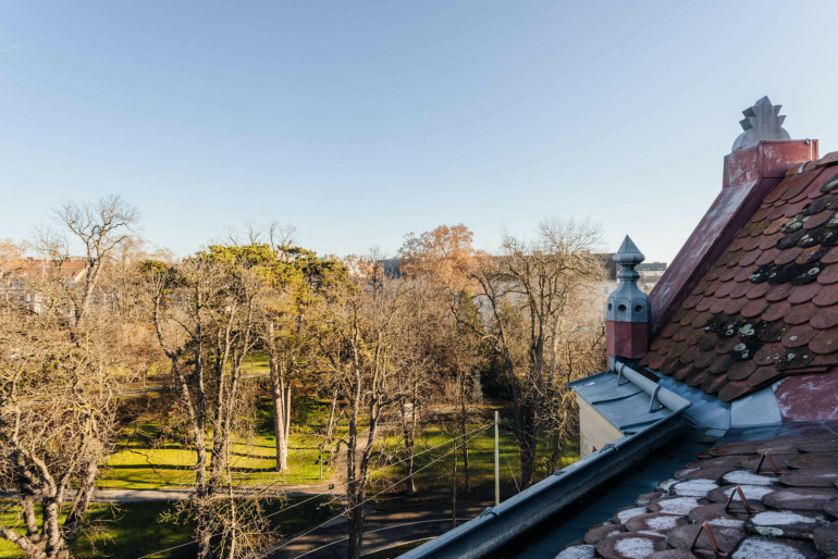 Die Wohnung liegt im ausgebauten Dachgeschoss (mit Lift) eines gepflegten Gründerzeithauses und verfügt über eine Wohnfläche von 93,92 m² mit Blick über den Stadtpark und die Dächer der Grazer Innenstadt.